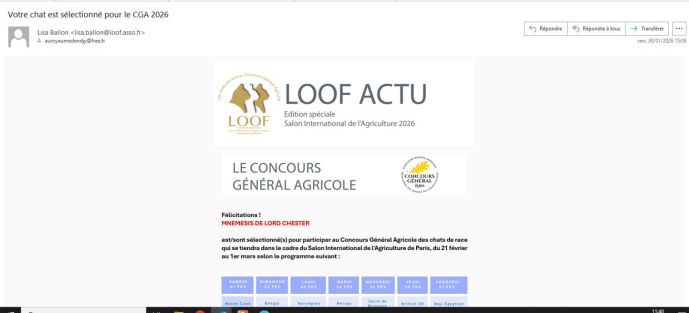 Une fois de plus, notre chat est sélectionné au concours général agricole du salon international de l'agriculture de Paris 2026 !!